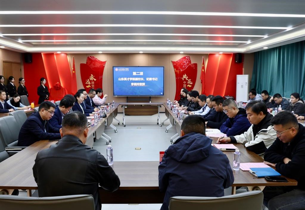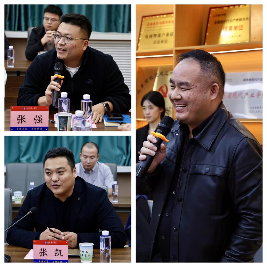 山东省电子商务协会秘书长于登杰与山东省物流与交通运输协会副会长兼秘书长侯鹏分别发言。他们分析了当前山东省电商与物流行业的发展态势及人才需求,对山东英才学院在应用型人才培养方面的前瞻性探索与实践给予高度评价,并表示期待未来推动更多会员单位与学校开展多元化、深层次合作。