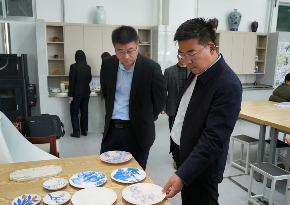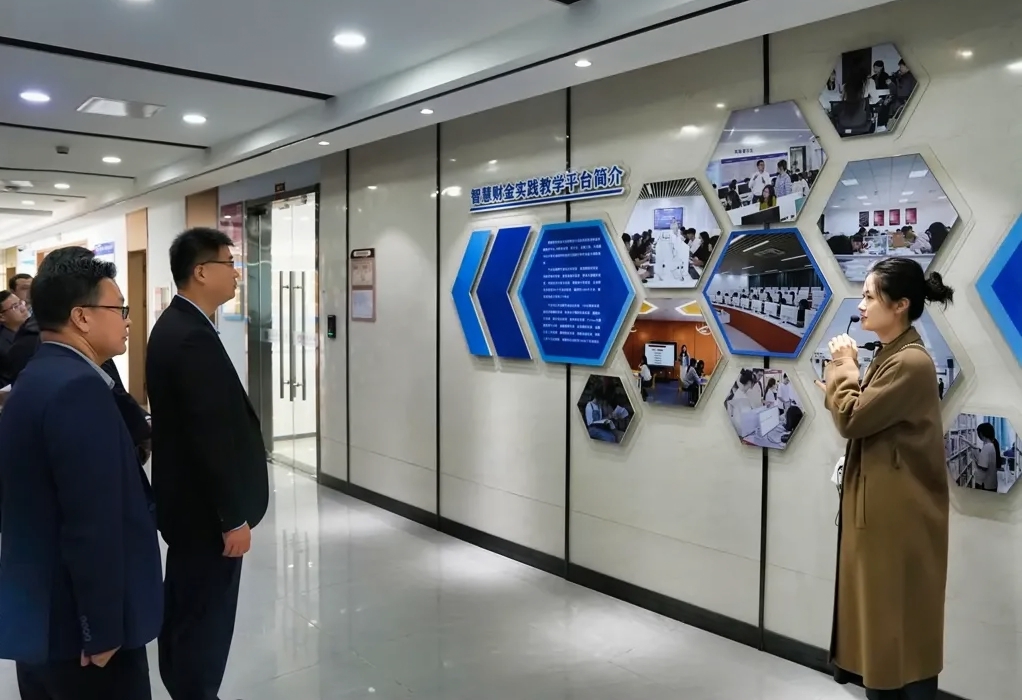考察组首先走访了商学院(国际学院)经济管理实验教学中心,详细了解学科专业布局,并实地参观了智慧财金实践教学平台、传统计量馆、电商直播基地等特色教学空间。随后,在设计学院综合实验教学中心,考察组现场观摩了学生竞赛获奖成果与毕业生文创作品,并深入课堂了解实际教学情况。起步区领导对学校在实践教学与特色办学方面取得的成效给予了高度评价。