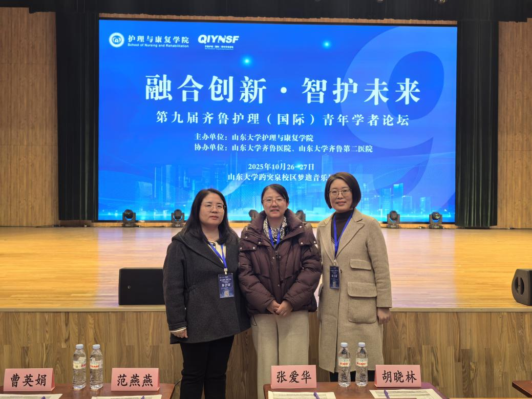 为紧跟康复治疗学与护理学科发展前沿,深化专业内涵建设,加强师资队伍培养,2025年10月27日,医学院康复治疗学专业负责人邬春艳、护理专业负责人夏淑娟及护理骨干教师刘敏一行,赴山东大学趵突泉校区梦迪音乐厅参加了“第九届齐鲁护理(国际)青年学者论坛”。