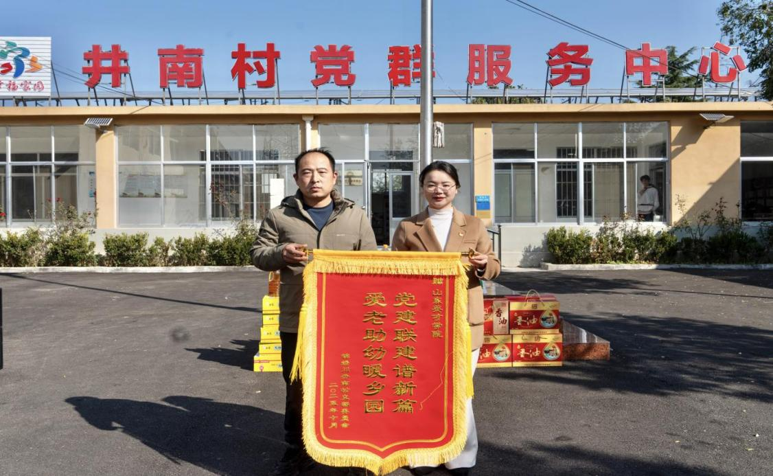 金秋送爽,丹桂飘香。2025年10月29日重阳节当天,山东英才学院学前教育学院师生一行在学院领导王琪瑶院长和任姗副院长的带领下,走进济南市锦绣川办事处井南村,举办“情暖重阳·爱润童心”公益慰问活动。本次活动获得了济南电视台的全程跟踪报道,并在现场收到了井南村书记代表村委赠送的锦旗,成为本次活动的温暖见证。