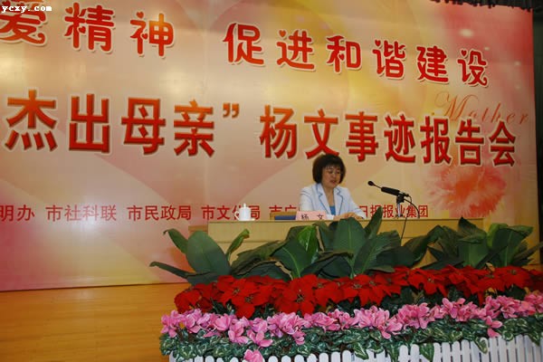 为深入贯彻党的十六届六中全会精神,落实市委、市政府关于创建和谐济南的总体部署。2月28日,由济南市妇联、市文明办、市社科联、市民政局、市文化局、济南日报报业集团、市广电局联合开展的“创和谐家庭、建和谐济南”主题行动在舜耕会堂拉开启动仪式,作为第二届"中国十大杰出母亲"的当选者,我院杨文副院长受邀请作了“弘扬母爱精神、促进和谐建设”专场报告会。