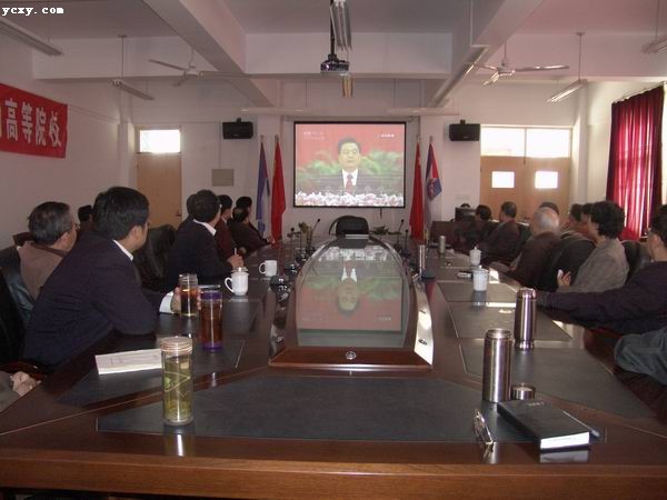 学院党委组织中层以上干部集体收看党的十七大(图)