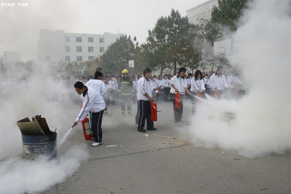 学生们正在学习如何使用灭火器